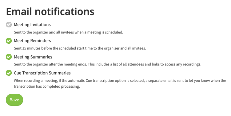 Disable/enable email summaries, meeting reminders and transcription summaries