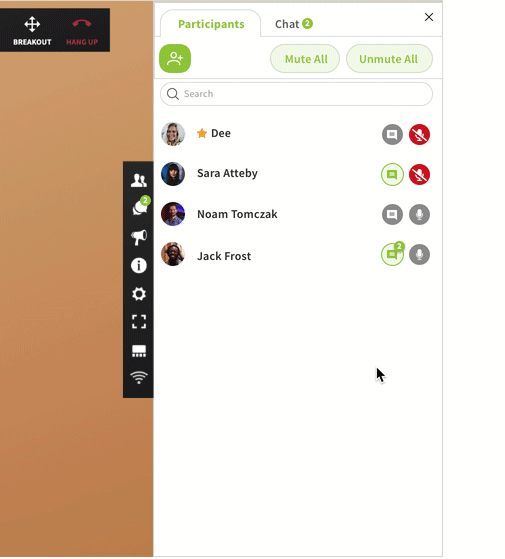 USER STORY: As a participant or moderator, I would like to be able to send a message directly to another person in that meeting without anyone else seeing that message. I would like to be able to have multiple simultaneous chat threads taking place at the same time with different individuals.