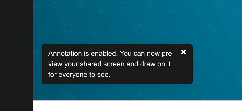 If the presenter activates annotation or another participant begins annotating on the screenshare, the following toast message will appear
