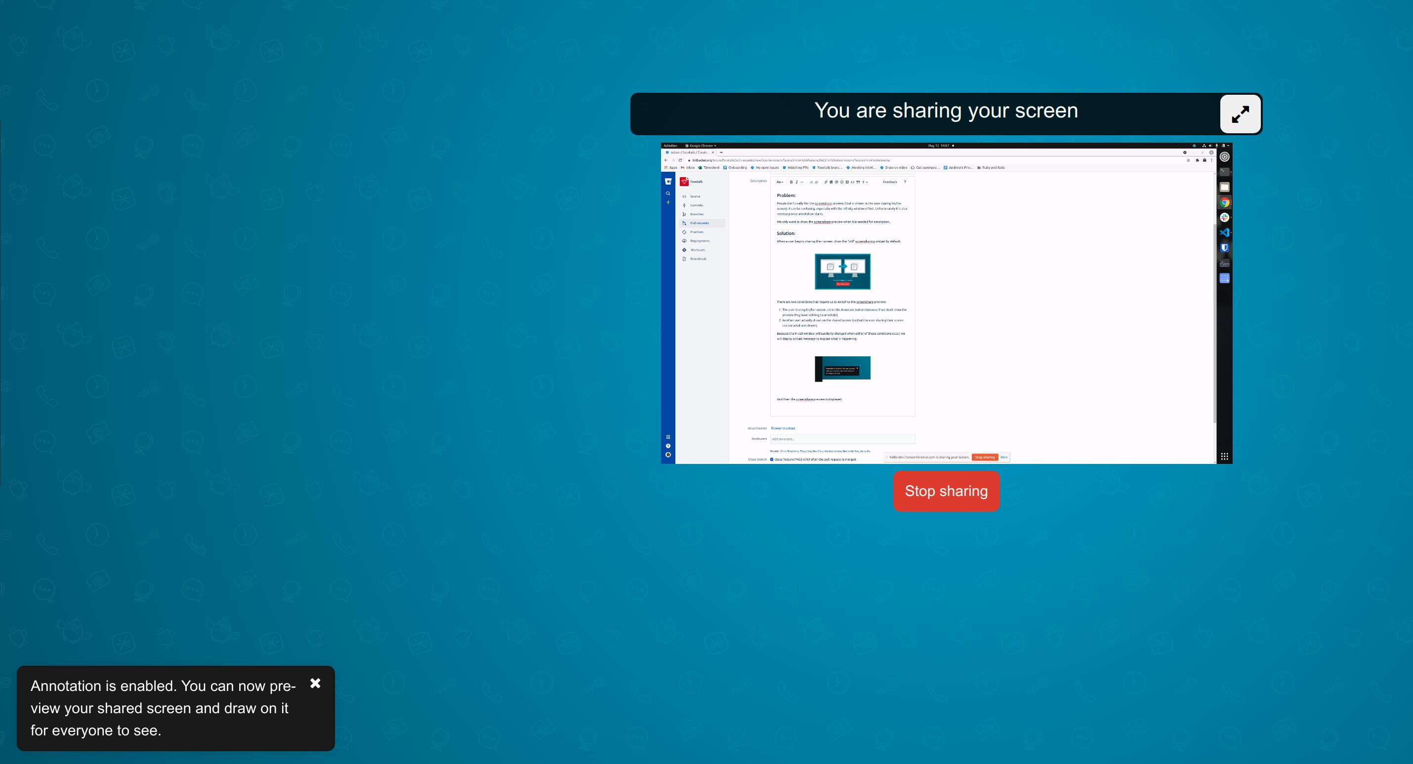 Only showing the screen sharing preview to presenters when annotation is active. This should reduce issues with the infinity mirror. Wireframes will be provided in next week’s update.