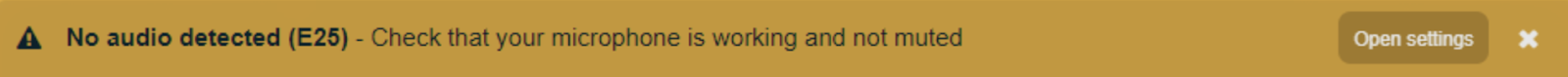Show warning message that the microphone may not be working during a meeting. This warning means that we have detected a device and are able to send audio, but there is no audio detected from that device. Meaning there could be a local issue on the user’s end.