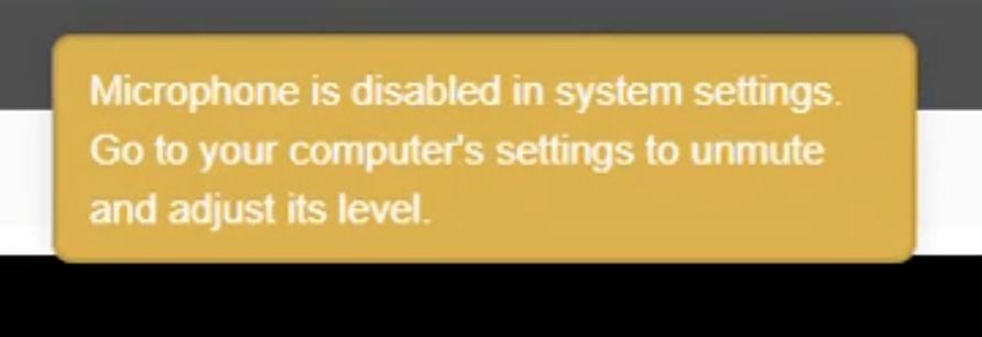 In the join UX (video and audio preview before entering a meeting), show an error message that the microphone has been disabled within the computer’s system settings.