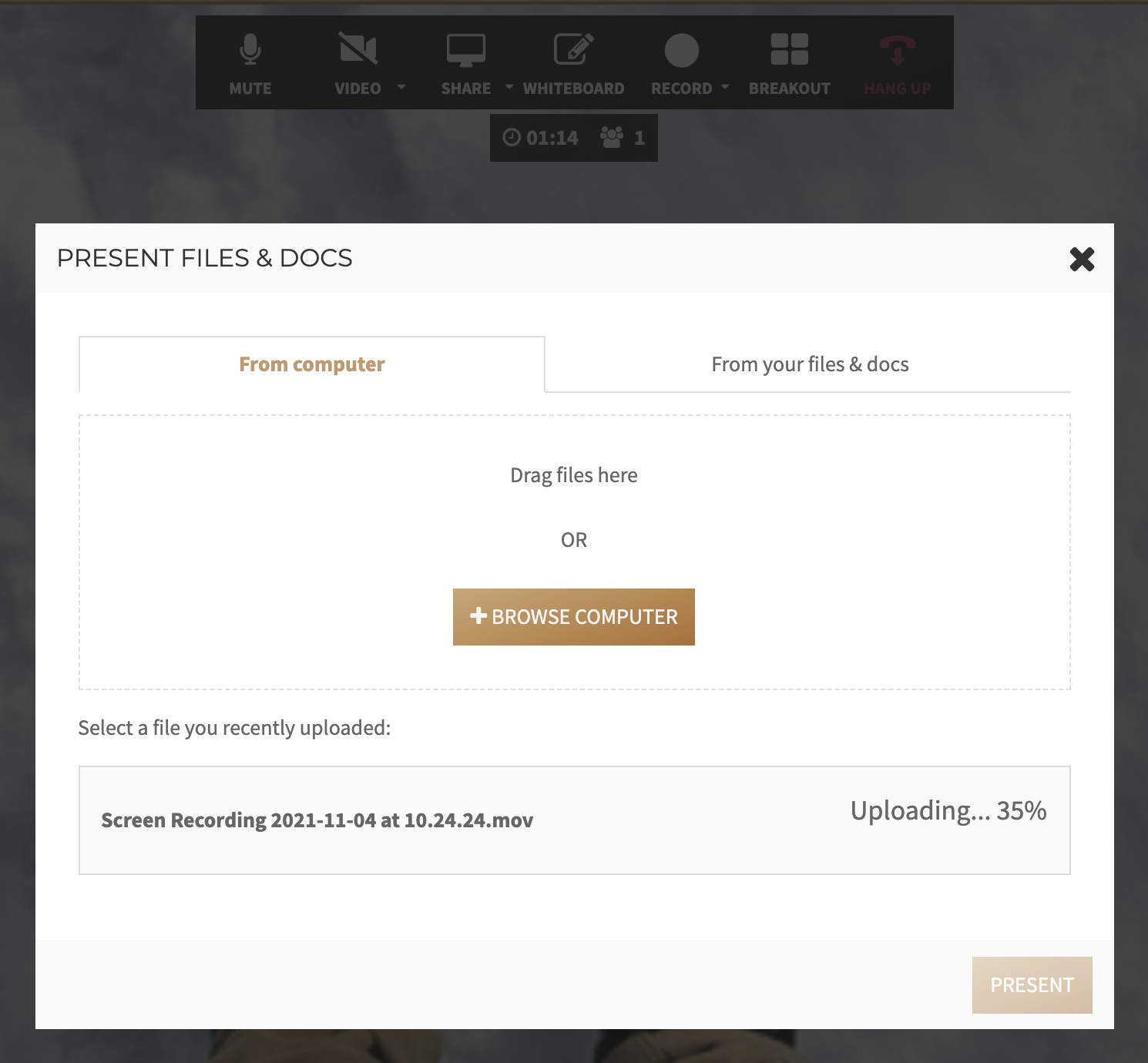 Present a file from your computer or content library.