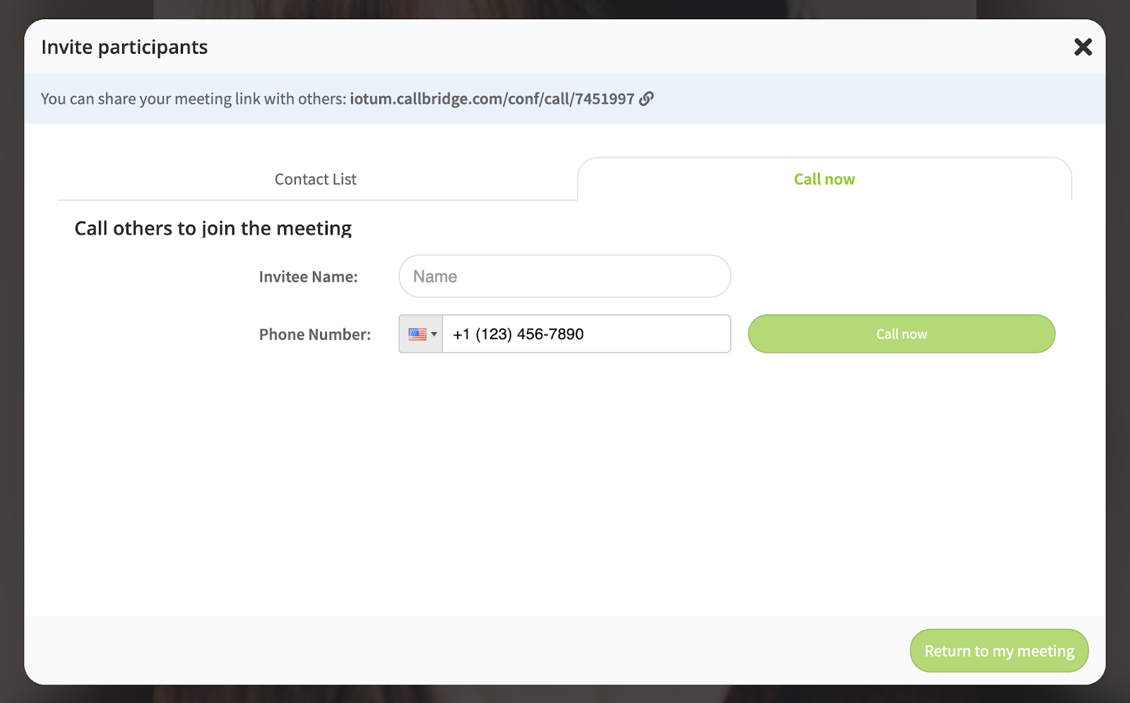 While in a meeting, a host can trigger an outbound phone call to bring people into the meeting