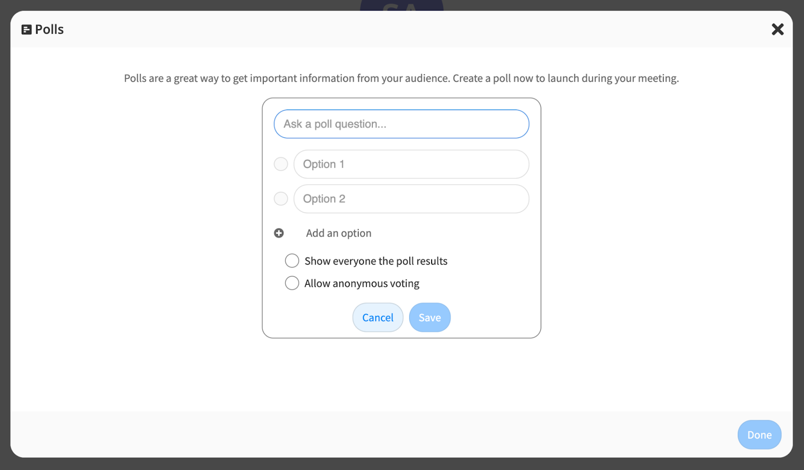 Add a poll when scheduling a meeting