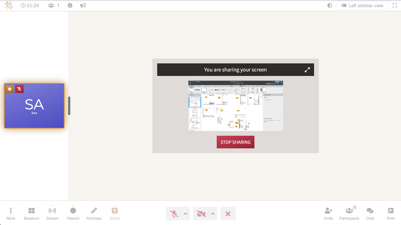 When a user initiates screen sharing from a computer, that person will now see a small preview of exactly what is being shared to the meeting. Clicking the expand icon in the top right of that window will allow the user to see a larger preview of what they are sharing and also annotate on that preview if desired.