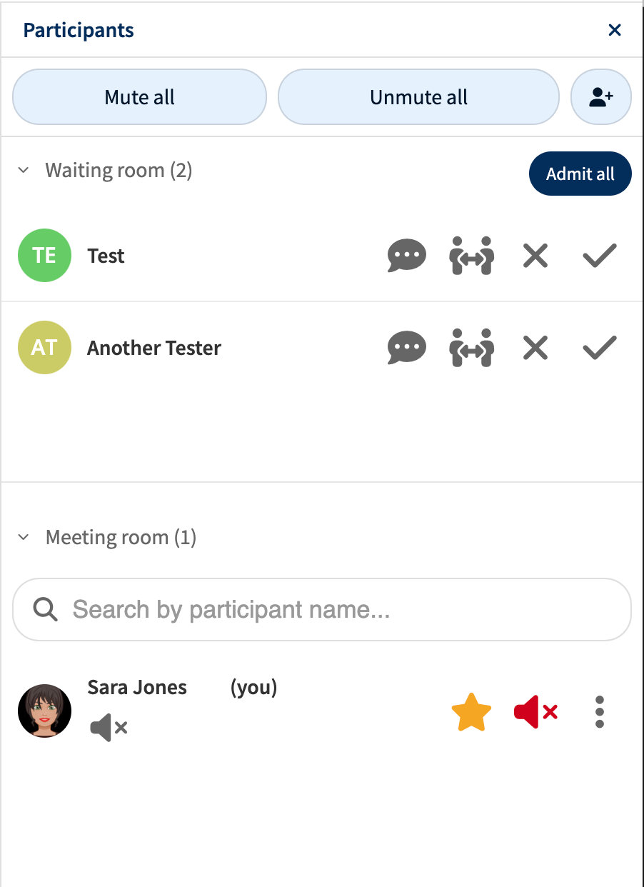 Improved UI for waiting room to clearly distinguish between those who are in the waiting room and those who are in the meeting room already.