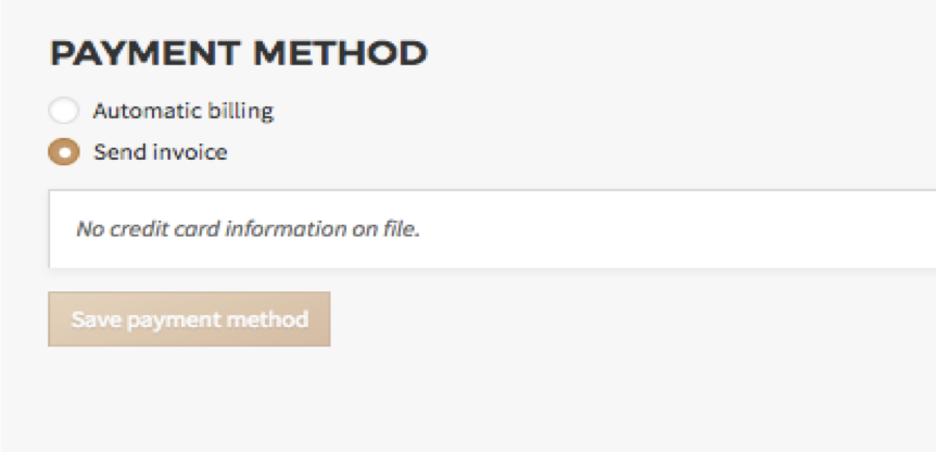 Select whether the company will be set up on Auto-Pay via a credit card or whether you will be sending them a monthly invoice.